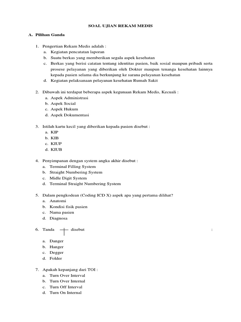 Soal Ujian Tulis Rekam Medis Pdf